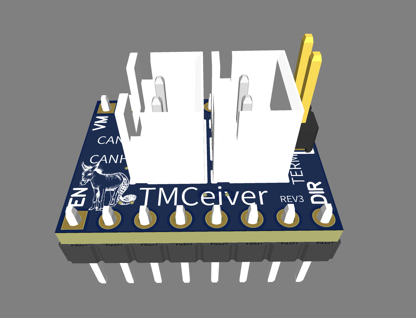 A few weeks ago, it occurred to me that it might be nice to design a pcb that would sit in a stepper slot and house a CAN transceiver, so I could ditch the U2C's. I did a little layout and sent it off to JLCPCB. I thought I would need to use a level shifted transceiver, but I did a little digging and realized PD0/PD1 are 5v tolerant pins, which simplified the design even more and really helped me squeeze everything onboard.